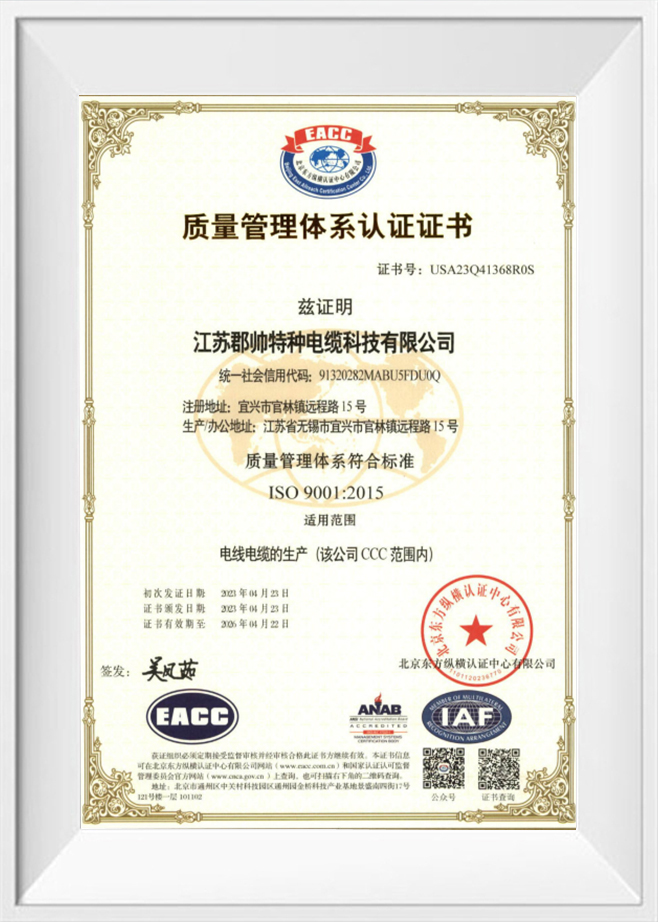 Jiangsu Junshuai Special Cable Technology Co., Ltd. on erikoistunut valmistamaan ja myymään mittatilaustyönä valmistettuja erikoisjohtoja ja -kaapeleita ainutlaatuisiin sovelluksiin. Yritys tarjoaa laajan valikoiman tuotteita, mukaan lukien vetoketjukaapeleita, PUR-kelakaapeleita, korkean ja matalan lämpötilan kaapeleita, nosturien lattakaapeleita, kulkukaapeleita, kelluvia kaapeleita, suojattuja kaapeleita, CCC-sertifioituja kaapeleita, UL-kaapeleita, CE-johtimia, koaksiaalikaapeleita sekä korkea-, keski- ja liikkuvia pienjännitekaapeleita. Vuosien kokemuksella kaapelisuunnittelusta Junshuai keskittyy tarjoamaan luotettavia ratkaisuja, jotka on räätälöity vaativiin ympäristöihin.